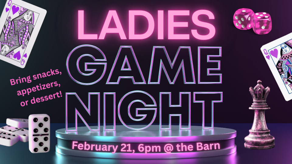 Come and enjoy each other’s company for a fun night out! Bring your favorite game and snack, appetizer, or dessert to share. All ladies and teens (age 10+) are welcome. Feel free to bring a friend!